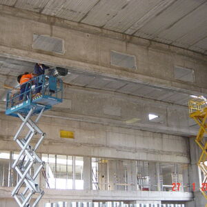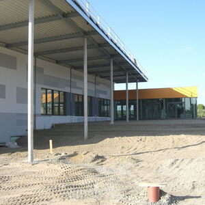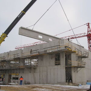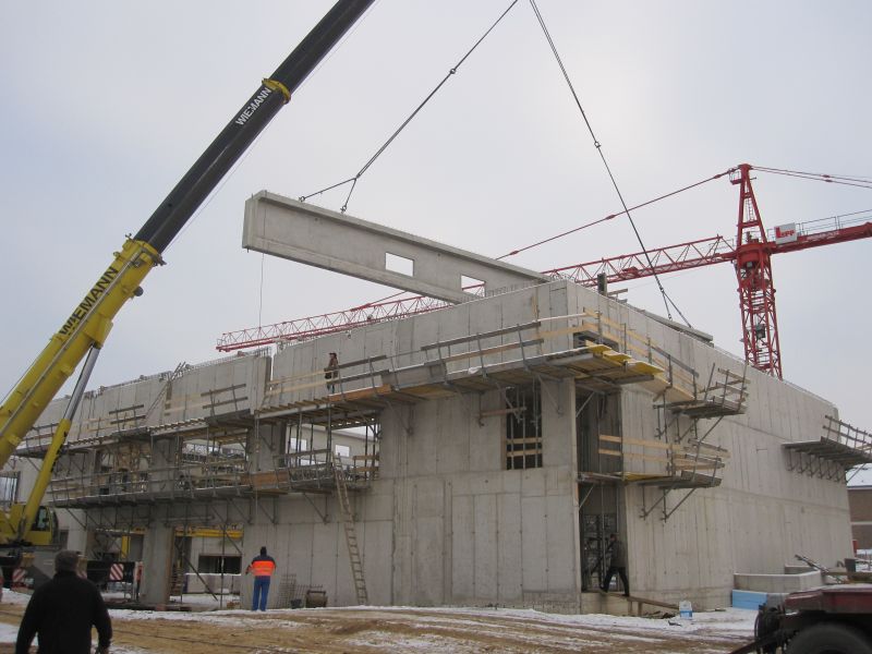 Bei dem Objekt handelt es sich um eine Stahlbetonkonstruktion mit Spannbetonbindern im Dach der Mehrzweckhalle. Ursprünglich wurde das Dach mit Brettschichtholzbinder bemessen.