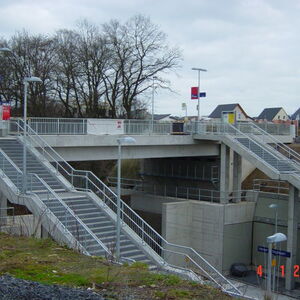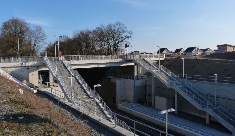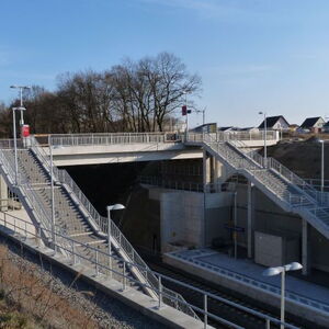 Die neue Spannbetonbrücke in Hennef Weldergoven überspannt die Bahnstrecke Köln - Gießen.