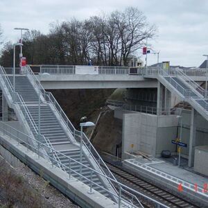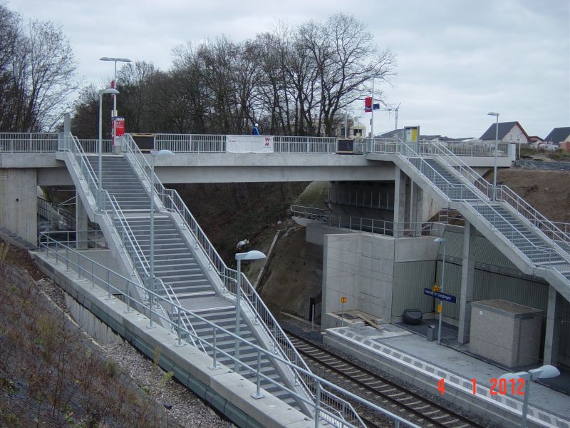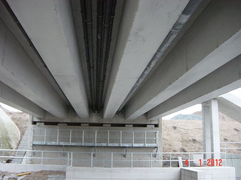 Eine besondere Schwierigkeit stellte das sehr kurze Zeitfenster von ca. 24 Stunden zum Auflegen der im Fertigteilwerk vorbetonierten Plattenbalken dar. Eine längere Sperrpause wurde von der Bahn AG nicht zugelassen.